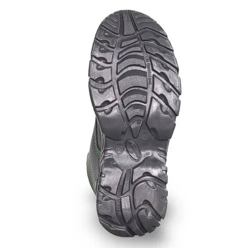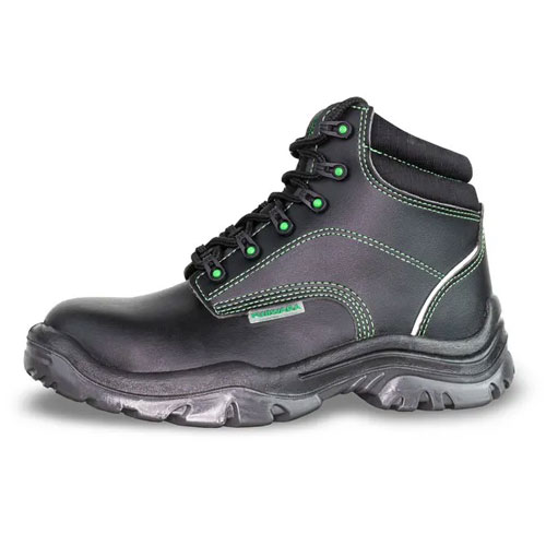 Calçado ocupacional de uso profissional, tipo botina, fechamento em cadarço, confeccionado em microfibra hidrofugada, palmilha de montagem em material sintético montada pelo sistema strobel, biqueira plástica, solado de poliuretano bidensidade antiderrapante injetado diretamente no cabedal, sistema de absorção de energia na região do salto, resistente ao óleo combustível.