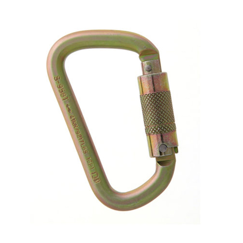 Mosquetão ou conector tipo “D” assimétrico de alta resistência; confeccionado em aço de diâmetro de 11mm de alto carbono de resistência superior devido ao aço e formato, 41kN; com acabamento anticorrosivo bicromatizado amarelo de durabilidade maior; com abertura de 22mm, proporcionado pelo seu formato garante mais conexões no mesmo dispositivo, sendo ideal para resgates; com tripla trava de segurança automático, garantindo agilidade nas conexões evitando abertura involuntária com uma segurança adicional; com excelente relação de custo benefício; com dimensões de 110.0 x 67.6mm e peso de apenas 229g tornando a melhor opção para atividades em altura de uso pessoal e resgate em ambientes industriais, esportivos ou resgate, pois o aço contribui para grande resistência e mínima manutenção; produzido sob os mais rigorosos padrões de qualidade mundial para atendimento das normas internacionais e nacionais de segurança do trabalho em altura podendo ser utilizado para uso industrial, esportivo e resgate, CE EN362; CE EN12275; UIAA e NBR15837, tornando assim um dispositivo essencial em suas mais diversas aplicações, inclusive para unir mais pontos de ancoragens no mesmo mosquetão.