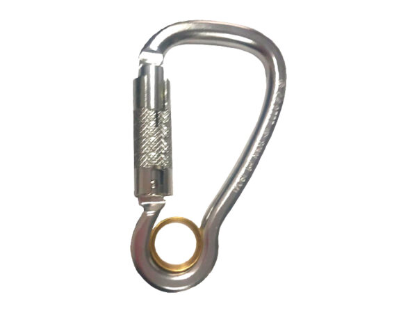 Mosquetão ou conector tipo gancho modificado com olhal integrado de alta resistência; confeccionado em alumínio anodizado natural de resistência superior devido a liga de alumínio e formato, garantem uma resistência 20kN; com acabamento de durabilidade superior; com abertura de 20,0mm, e olhal com 18,3mm proporcionado pelo seu formato garante mais conexões no mesmo dispositivo, sendo ideal para resgates ou confecções de talabartes ou suporte de ferramentas em altura; com tripla trava de segurança automático, garantindo agilidade nas conexões evitando abertura involuntária com uma segurança adicional; com excelente relação de custo benefício; com dimensões de 126.0 x 77.0mm e peso de apenas 95g tornando a melhor opção para atividades em altura de uso pessoal e resgate em ambientes industriais, esportivos ou resgate, pois o aluminio contribui para grande resistência e menor peso; produzido sob os mais rigorosos padrões de qualidade mundial para atendimento das normas internacionais e nacionais de segurança do trabalho em altura podendo ser utilizado para uso industrial, esportivo e resgate, CE EN362; tornando assim um dispositivo essencial em suas mais diversas aplicações, inclusive para confecção de tababartes ou dispositivos de suspensão de ferramentas para trabalho em altura.
