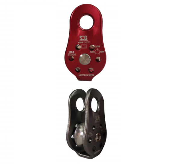 Polia simples, com placas fixas, em alumínio extra resistente com buchas auto lubrificantes para corda de diâmetro de 13mm.