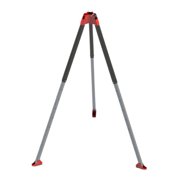 Tripé para trabalho em espaço confinado . Carga – 1200 kgf . As pernas confeccionadas em perfil estrutural tubular em alumínio de alta resistência .Cabeça em AÇO e três pontos de ancoragem adicionais para fixação de dispositivos auxiliares .Sapatas em AÇO , com base de borracha antiderrapante e furação para a passagem da corrente de travamento de segurança das pernas. Regulagem máxima 2300 mm e mínima 1600 mm. Cabeça , pernas e sapatas com pintura epóxi.